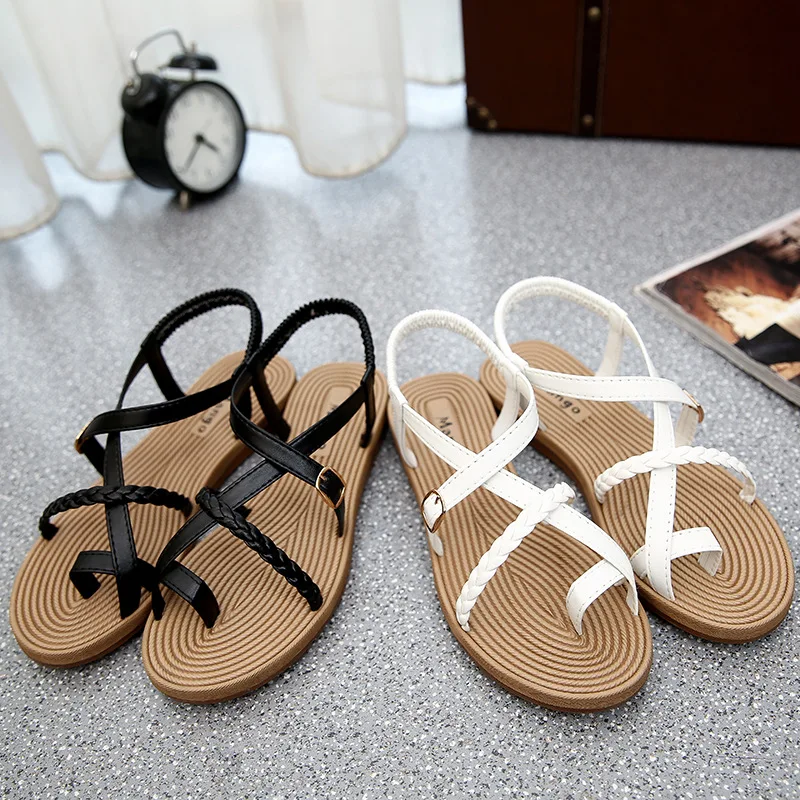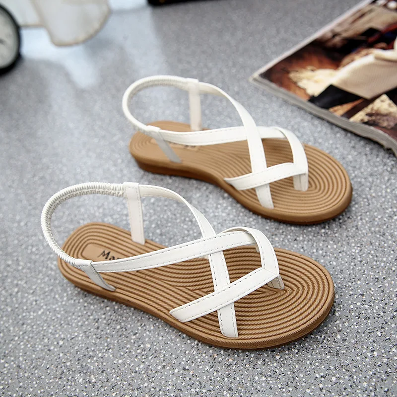 Yu Kube Summer Shoes Woman Sandals Elastic Flat Sandalias Mujer 2020 Strappy Gladiator Beach Sandals Ladies Flip Flops White