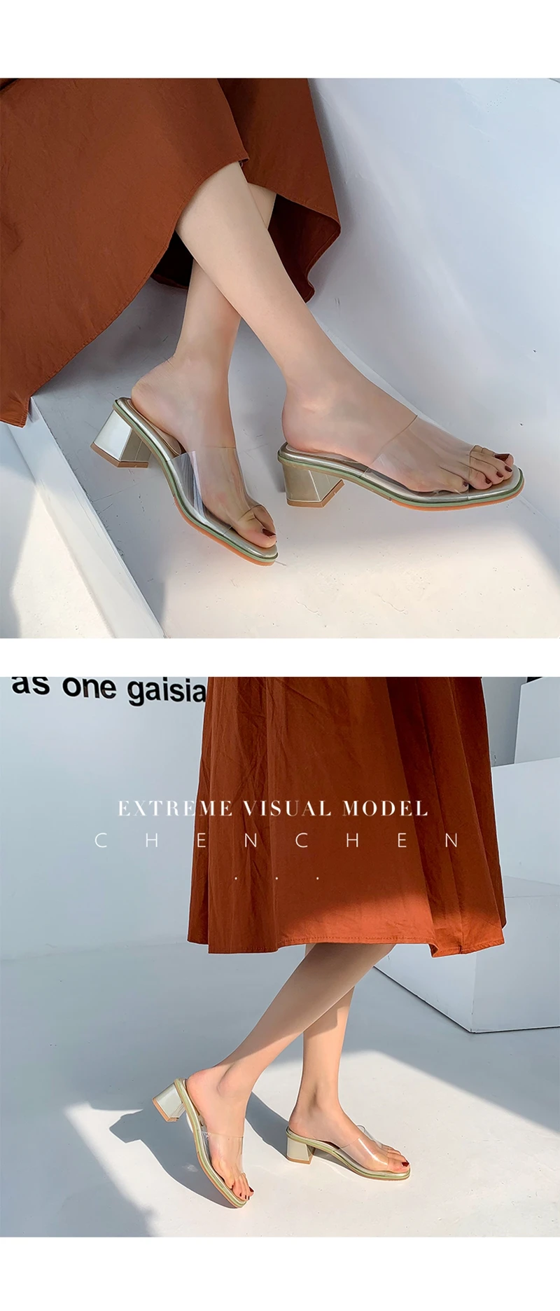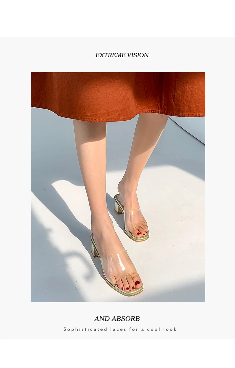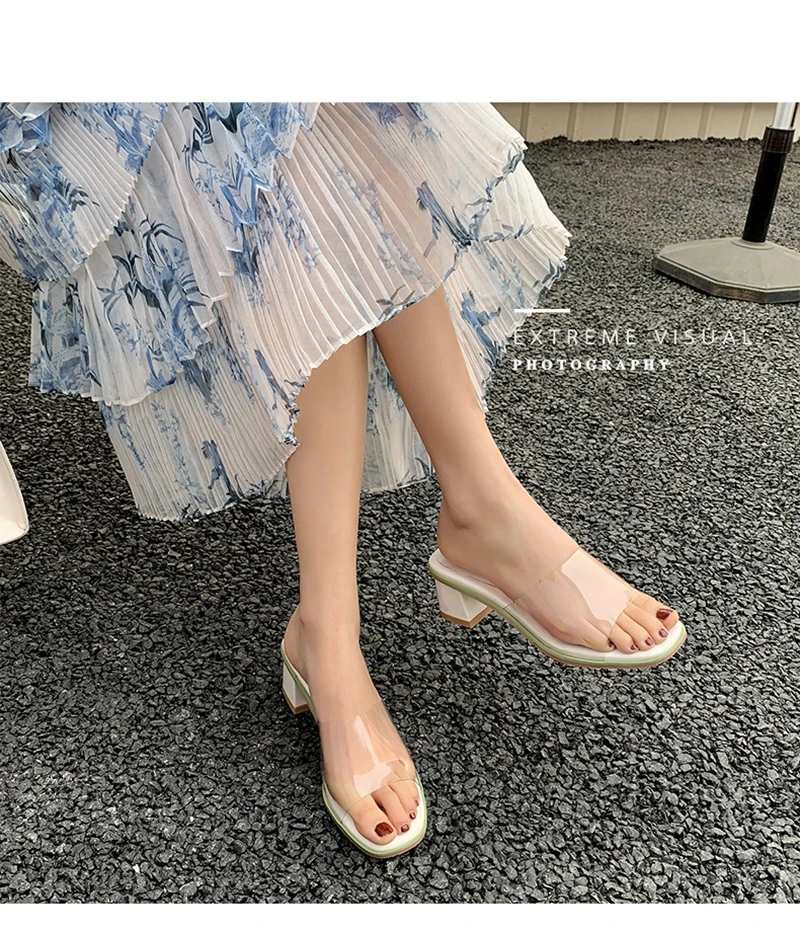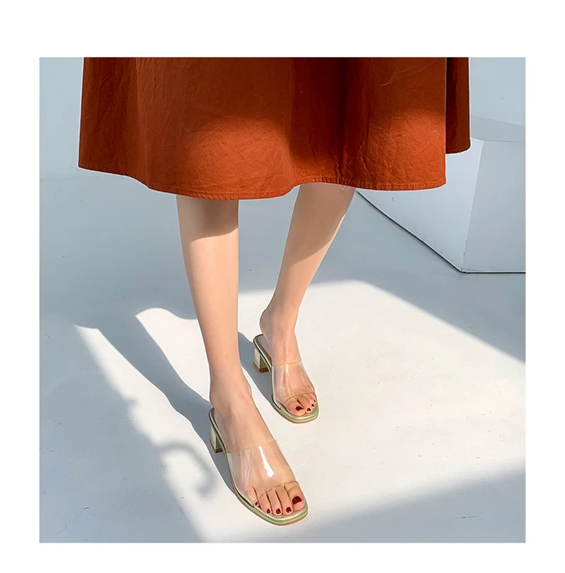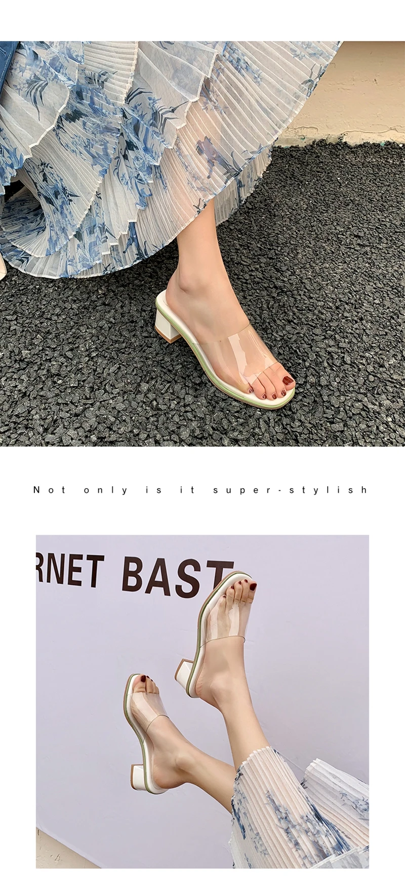 Zapatos De Mujer 2021 Fashion PVC Women Sandals Summer Peep Toe Transparent High Heels Slippers Party Shoes Size 32-43 A520
