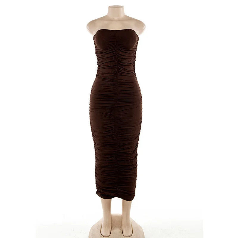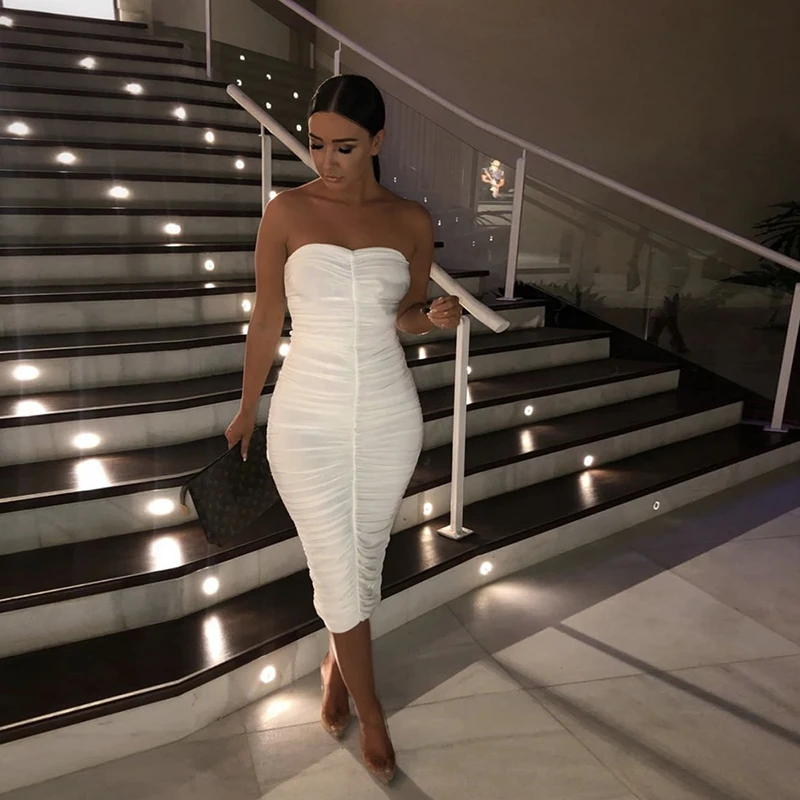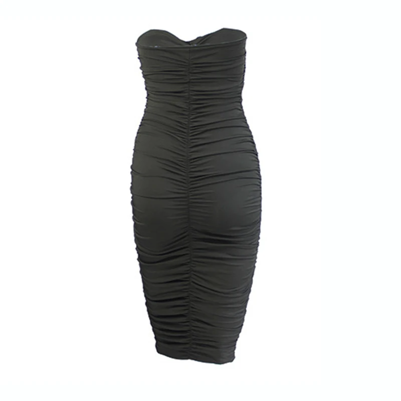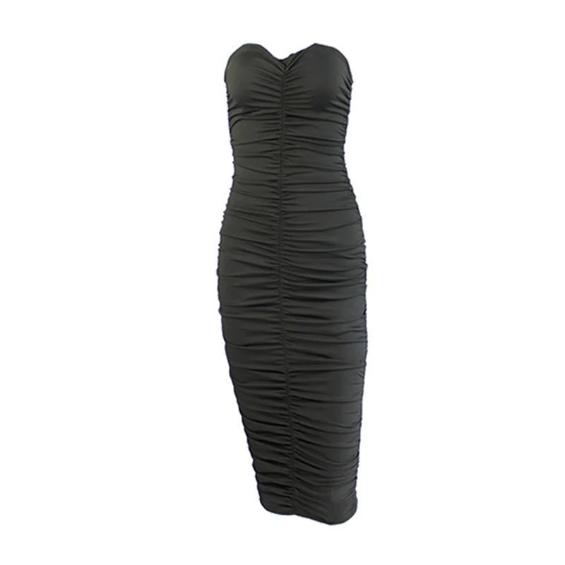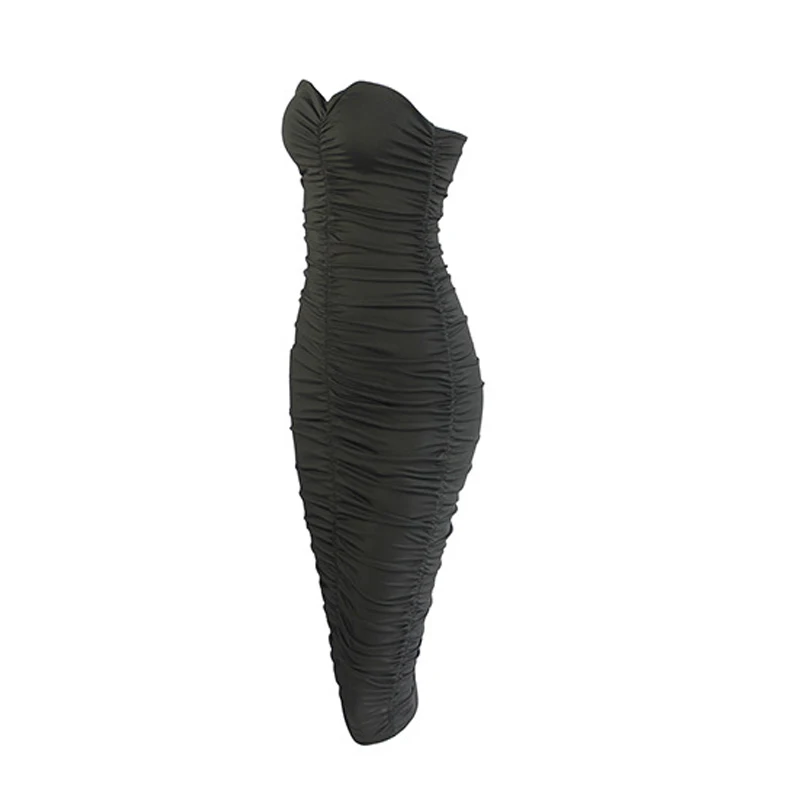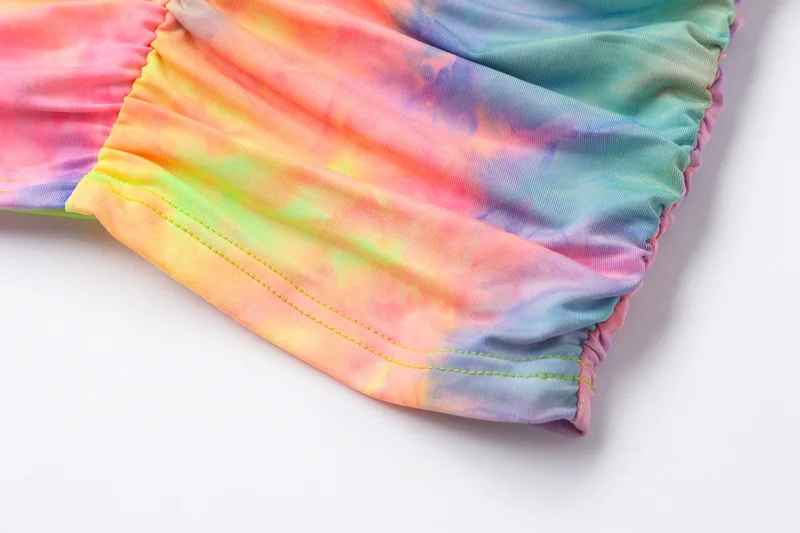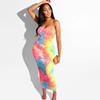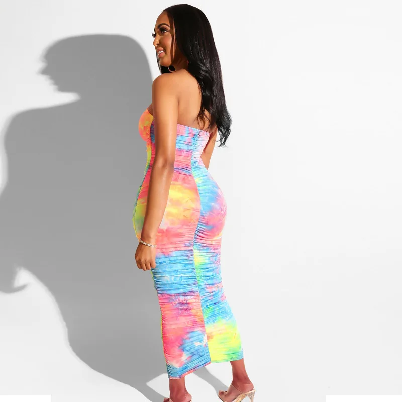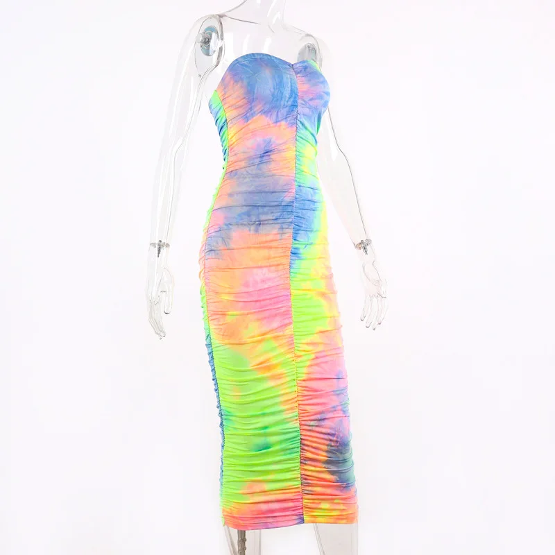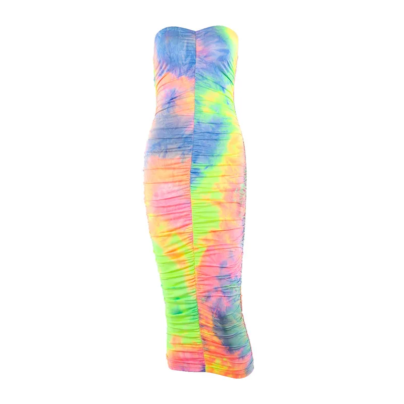 ZHYMIHRET Summer Neon Green Tube Dress Women Ruched Long Bandage Dress Sexy Strapless Bodycon Tie Dye Party Vestidos