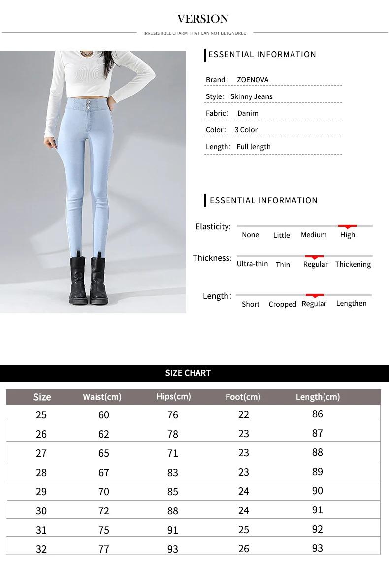 ZOENOVA Sexy Skinny Jeans Women High-waisted Butt-lifting Long Jeans Retro Fashion Street Leggings Stretch Oversized Jeans 25-32