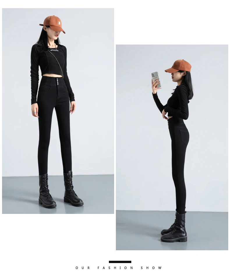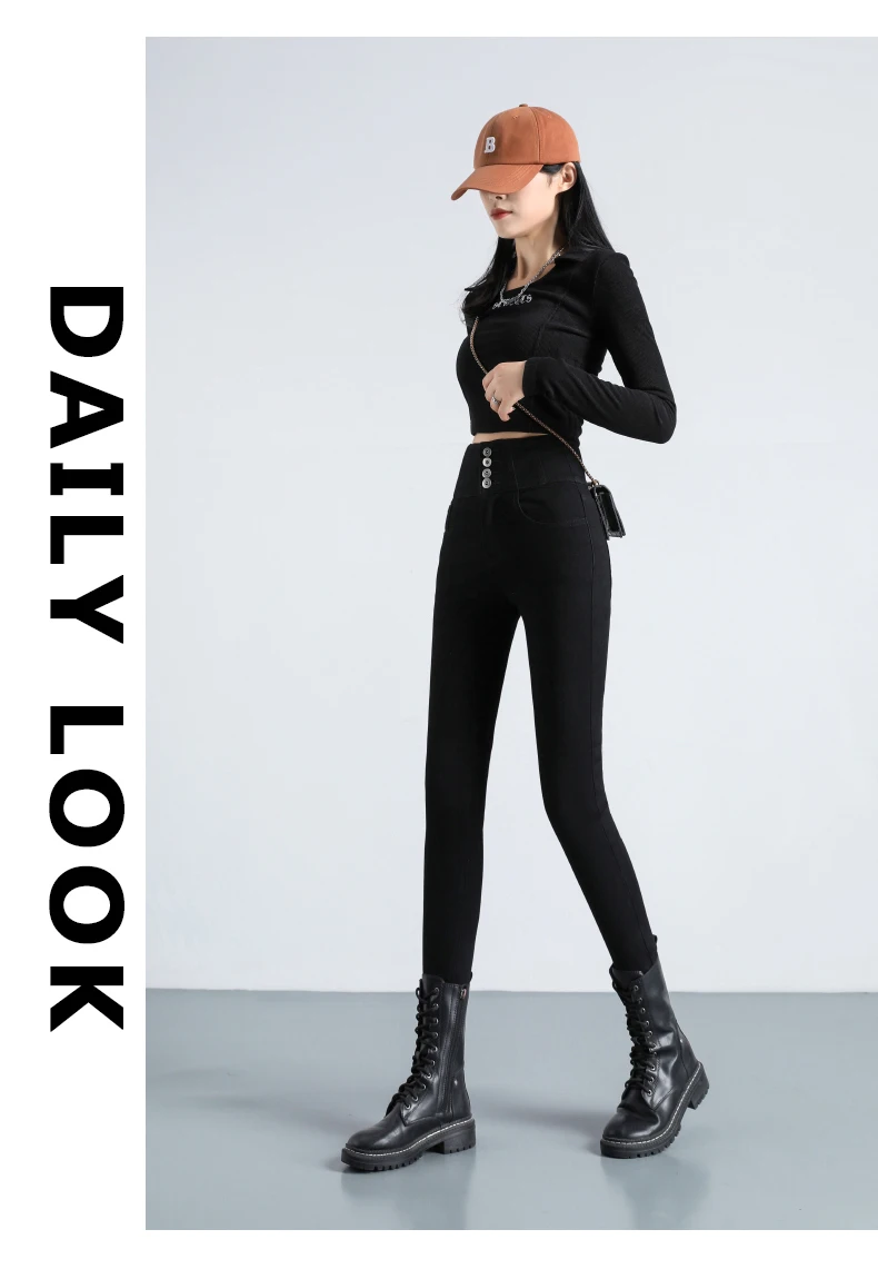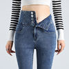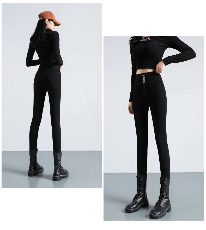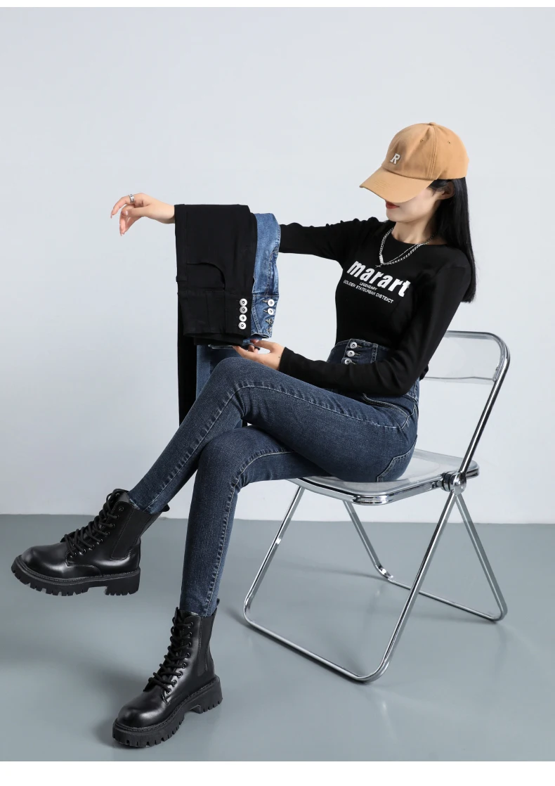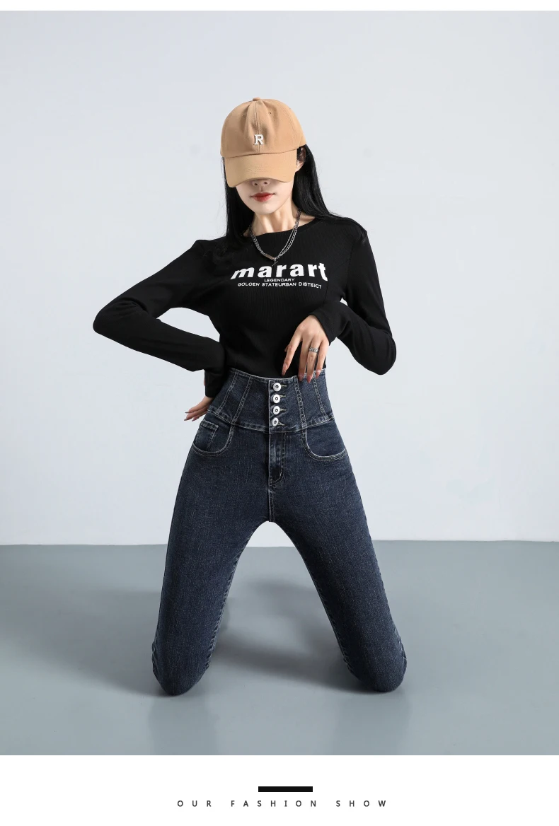 ZOENOVA Vintage Skinny Four Buttons Pencil Jeans Women High Waist Slim Fit Stretch Denim Pants Full Length Denim Tight Trousers