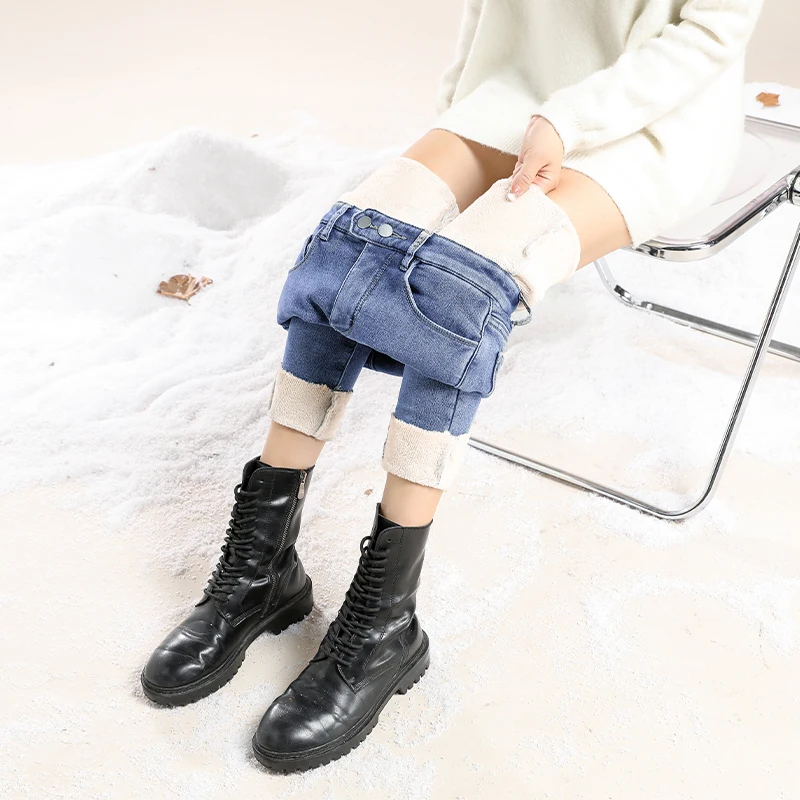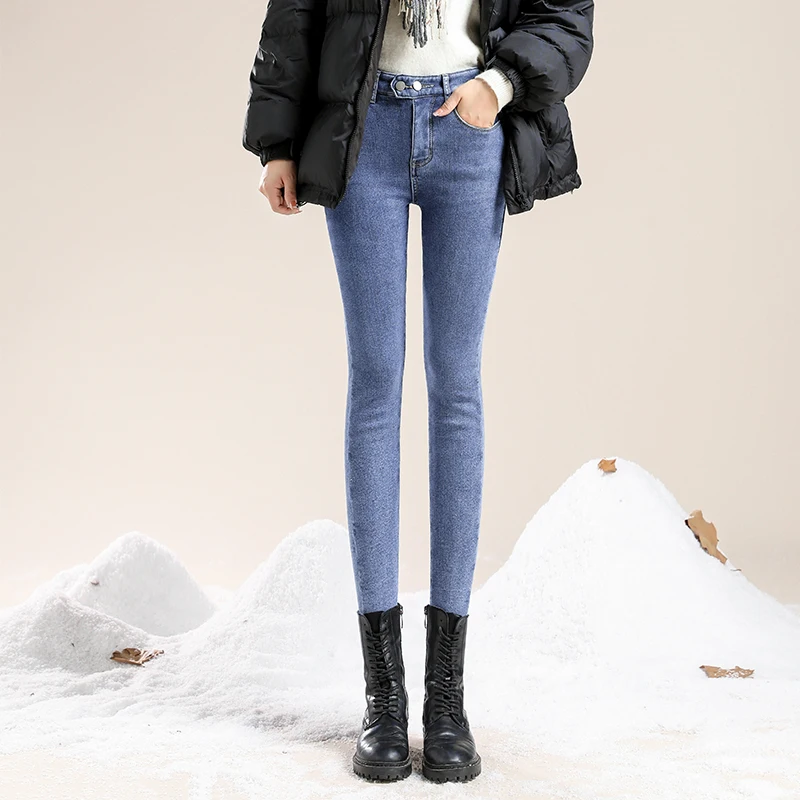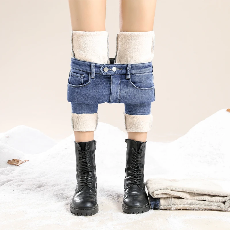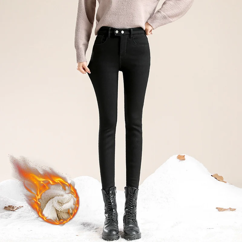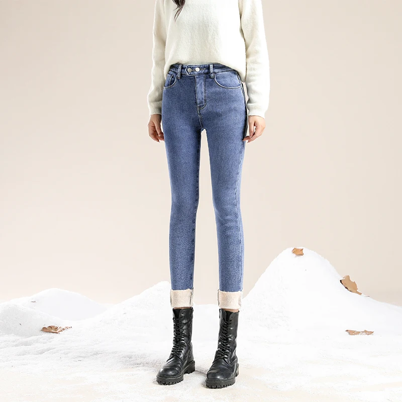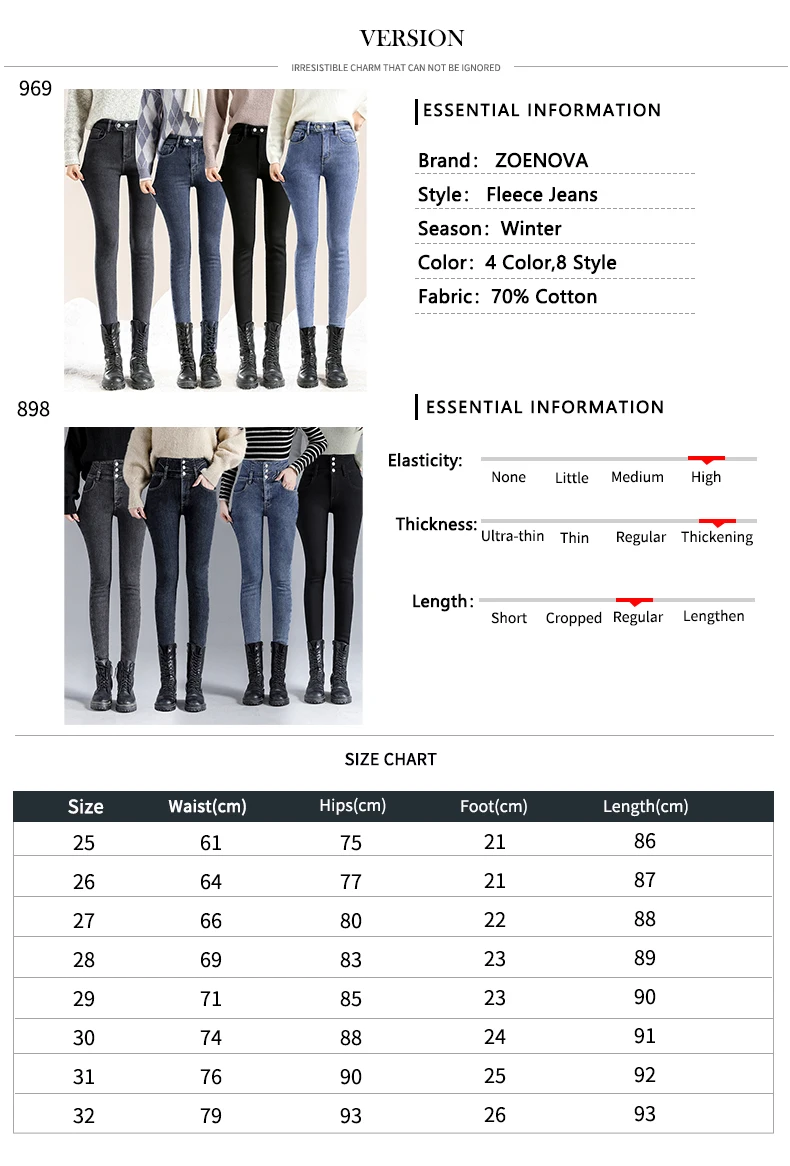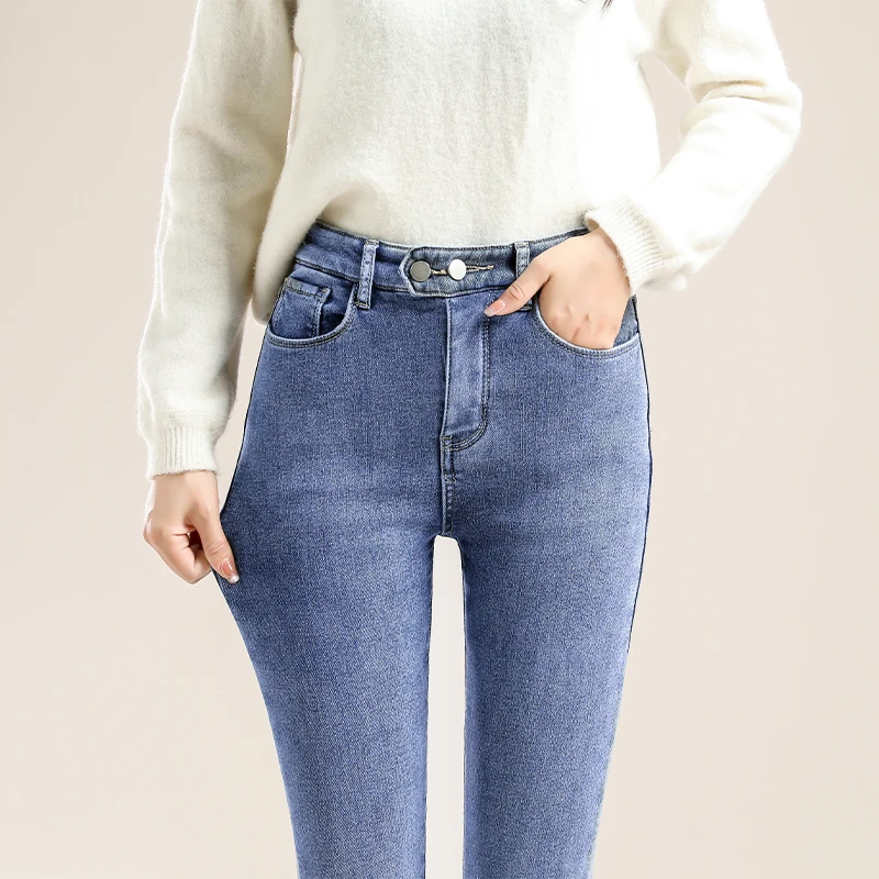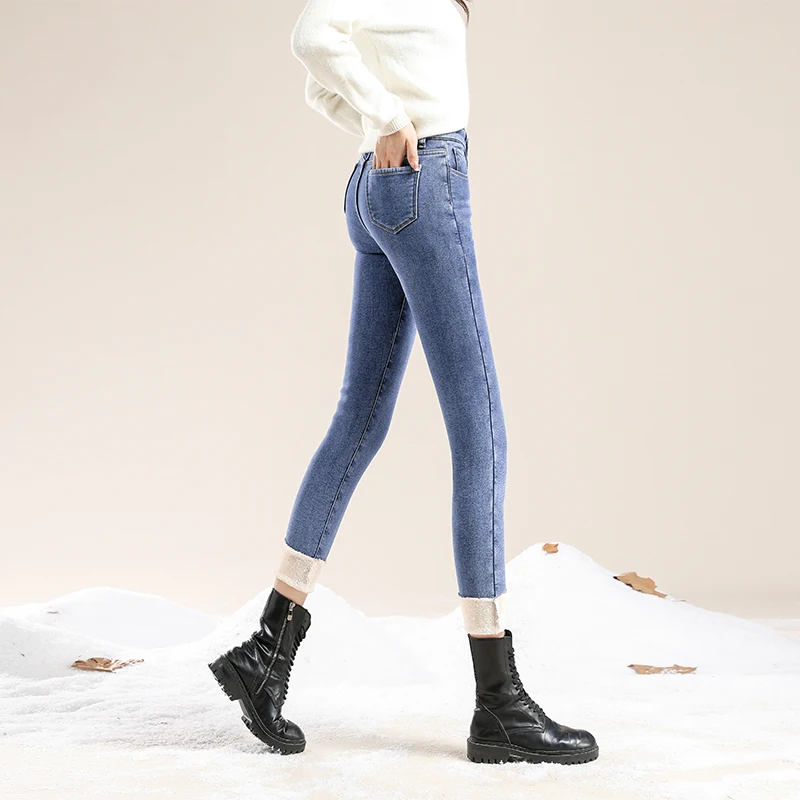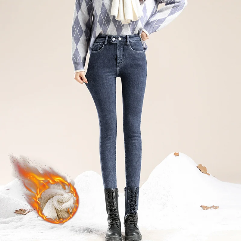 ZOENOVA Winter Thick Velvet Women High Waist Skinny Jeans Simple Fleece Warm Slim Fit Stretch Ladies Casual Denim Pencil Pants