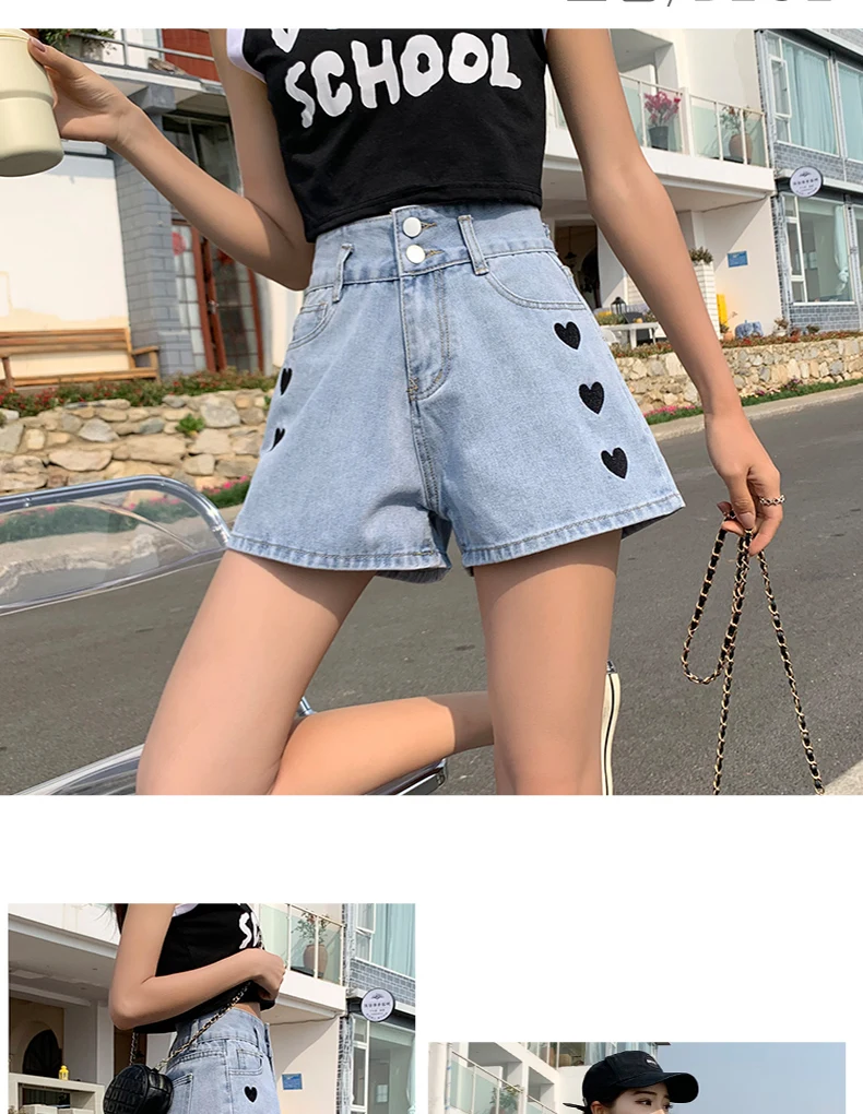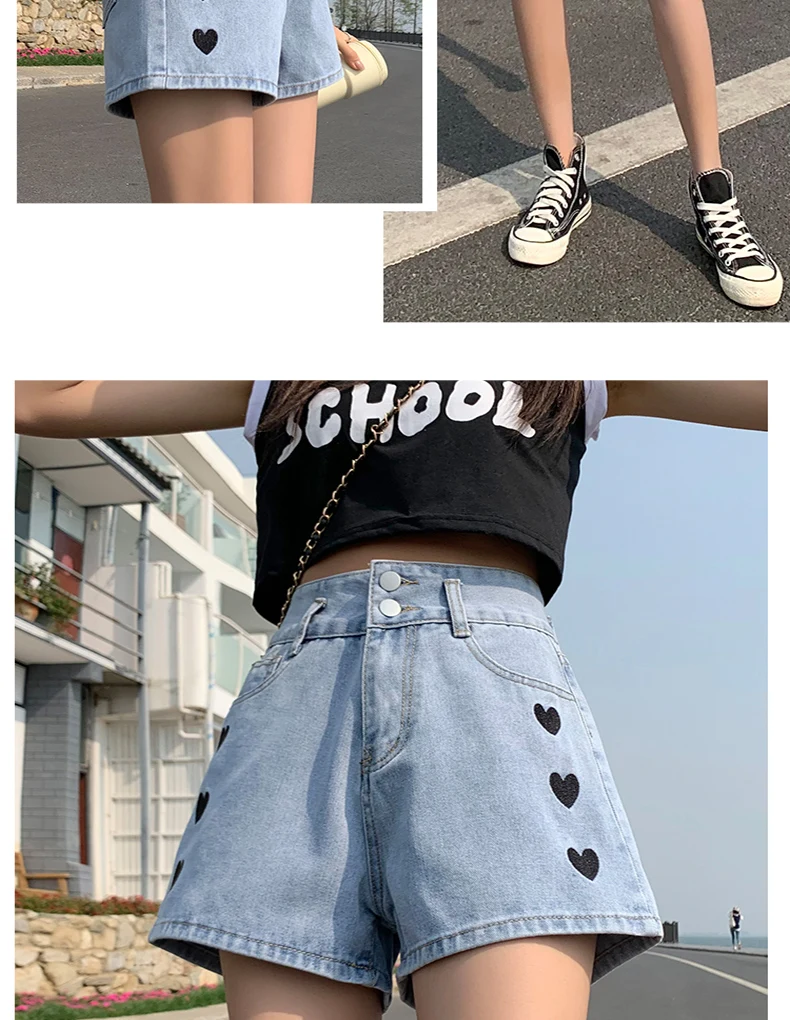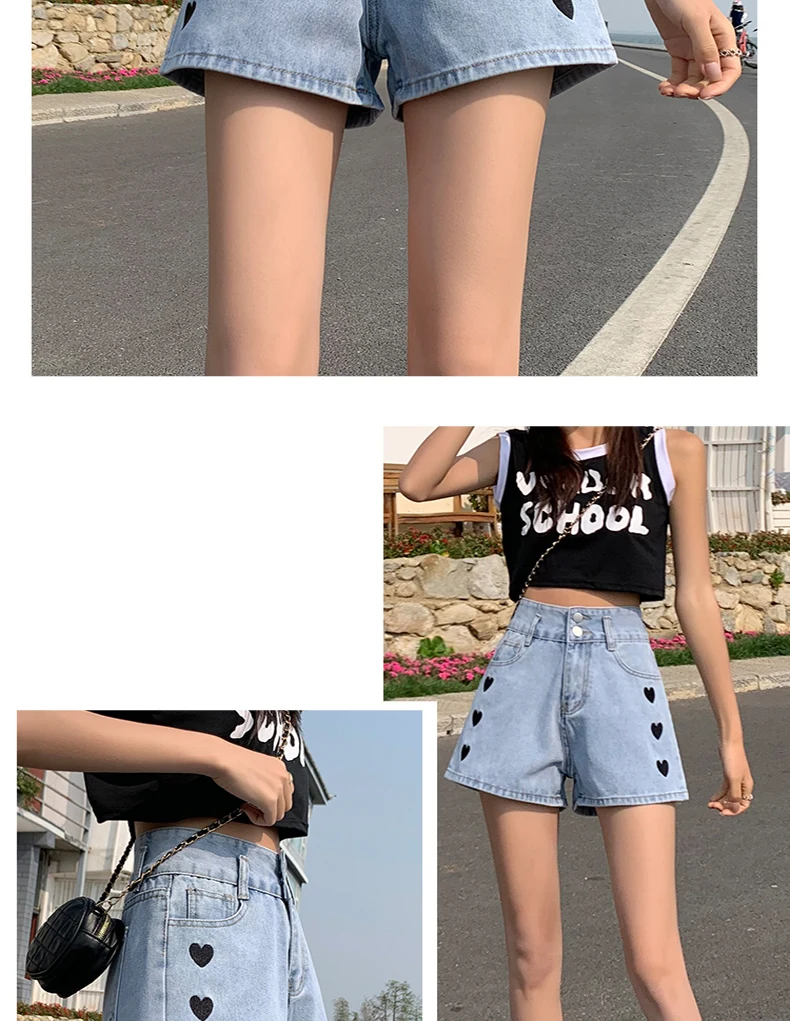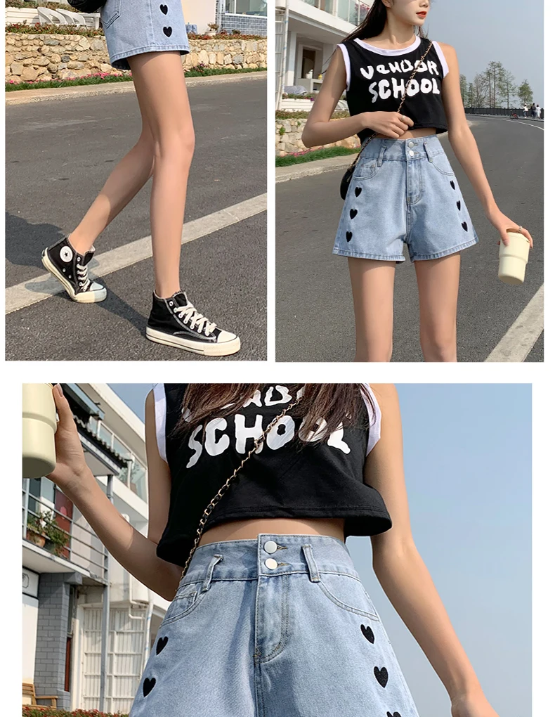 Zoenova Women Love Printed Shorts 2021 Summer Korean A-Line Cute Jeans Casual Fashion Aesthetic High Waist Ladies Chothing