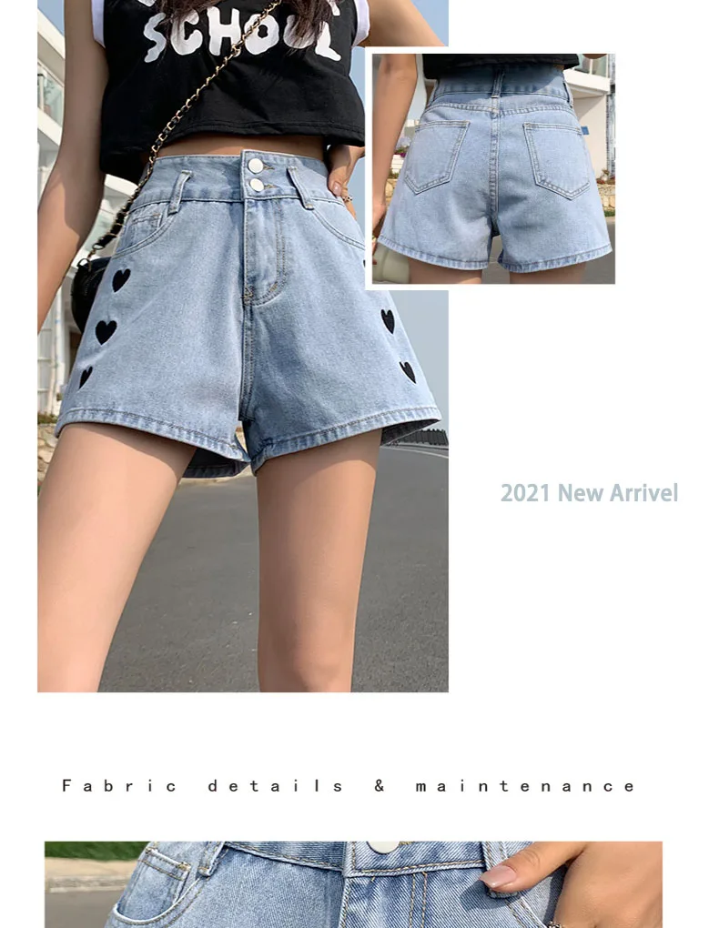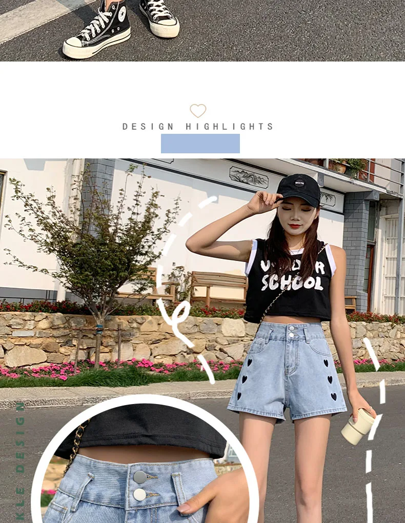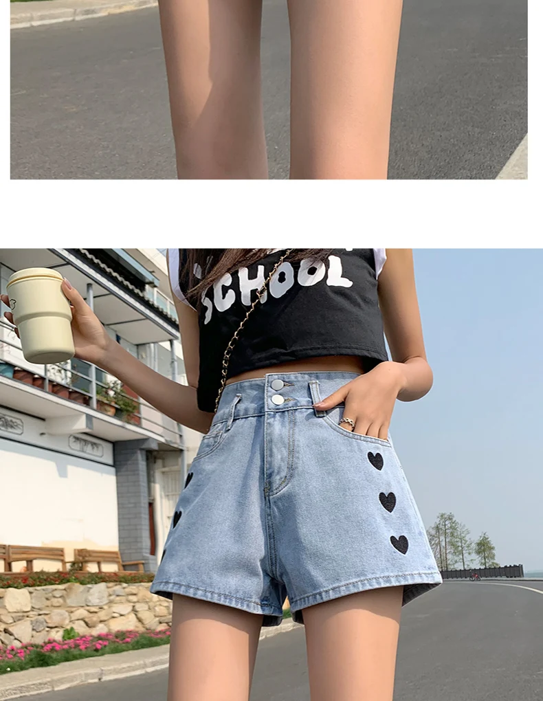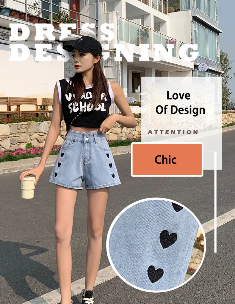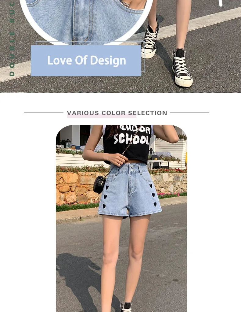 Zoenova Women Love Printed Shorts 2021 Summer Korean A-Line Cute Jeans Casual Fashion Aesthetic High Waist Ladies Chothing