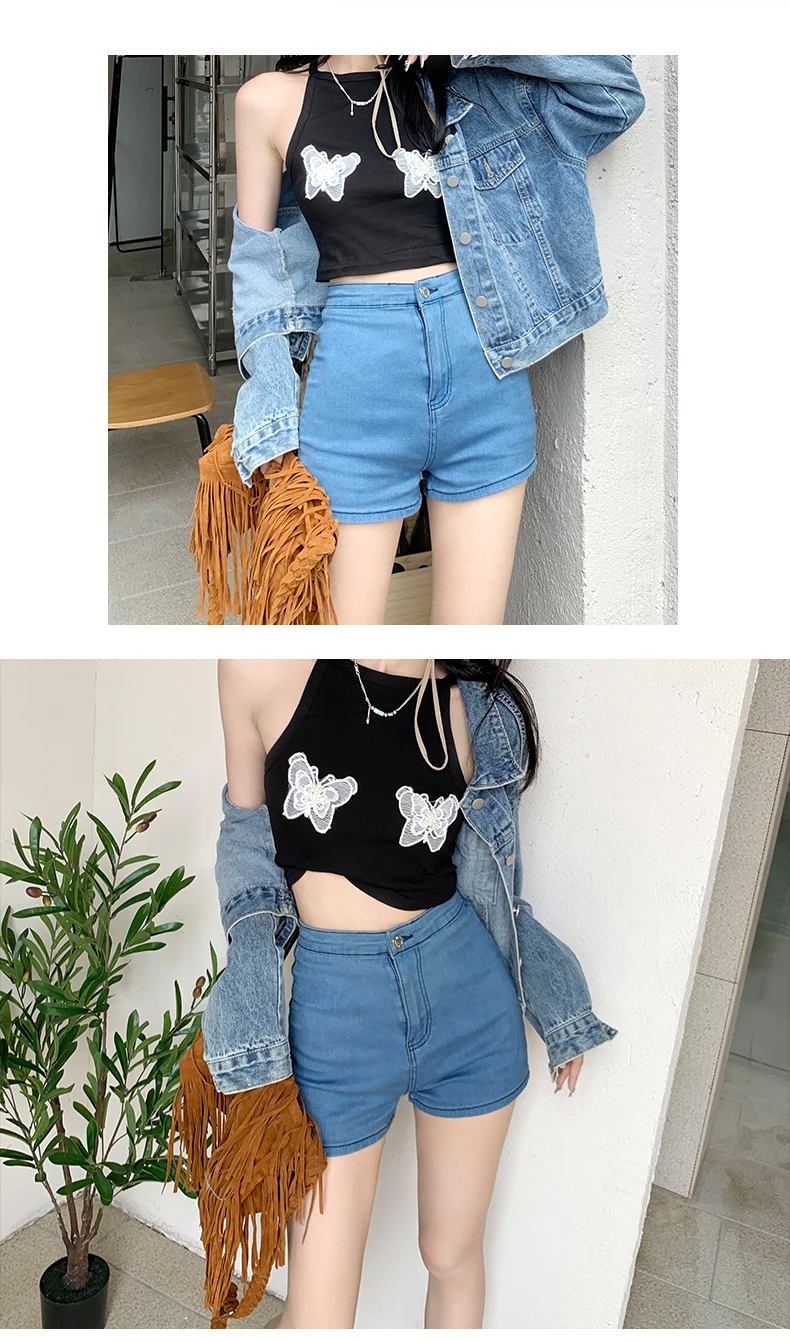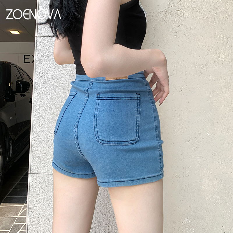 ZOENOVA Women's Denim Shorts Zipper High Waist Blue Wide Leg Female Tassel Bottom 2022 Summer Trend Short Jeans For Women